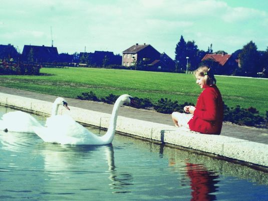 “ Der Landschaftsarchitekt Ulli Gerdes aus Worpswede entwickelte 1968/69 die Planung aus Stilelementen einer seinerzeit durch Gartenschauen und Kurbädern geprägten Freiraumarchitektur. Im Sommer 1970 konnte sich die Bevölkerung in der attraktiven Grünanlage erstmals an Rosenlauben, den begrünten Pergolen und Sitzecken zwischen unterschiedlich bepflanzten Hochbeeten erfreuen. Die zentrale Wasserfontäne und Wasserspiele in einem Schwanenteich galten als große Besonderheiten der Parkanlage, exotische Gehölze gaben ihr eine außergewöhnliche Note. Der Park wurde bald ein gern genutzter Treffpunkt. 20 Jahre später konnte die Stadt die Kosten für intensive Pflege des Grüns und Unterhaltung der Technik nicht länger tragen. Gehölze überwucherten die Freiräume, Lauben verfielen, Wasserspiele und zentrale Fontäne wurden aufgegeben und das Wasserbecken wurde zu einem Sandkasten umfunktioniert. Großgeräte (Skateranlage, Streetballfeld, Seilbahn) verwandelten den Park danach in einen Spieltreff für Kinder und Jugendliche.